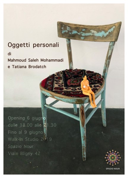 All’interno di Walk-In Studio, Festival degli spazi e studi d’artista, dal 6 al 9 giugno 2019 Spazio Nour ospita la collettiva Oggetti personali, di Tatiana Brodatch e Mahmoud Saleh Mohammadi. L’opening è previsto il 6 giugno dalle ore 18.00 alle 21.30 presso Spazio Nour, Viale Bligny 42.