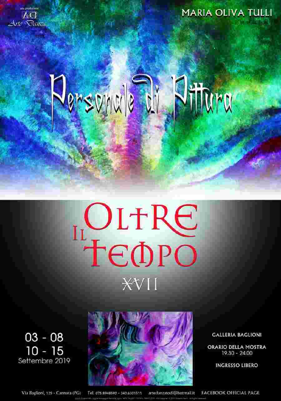 “OLTRE IL TEMPO 2019 - XVII Edizione” è la nuova Personale di Pittura dell’artista umbra Maria Oliva Tulli, che si svolgerà nella Galleria Baglioni a Cannara (PG), da martedì 3 settembre prossimo.