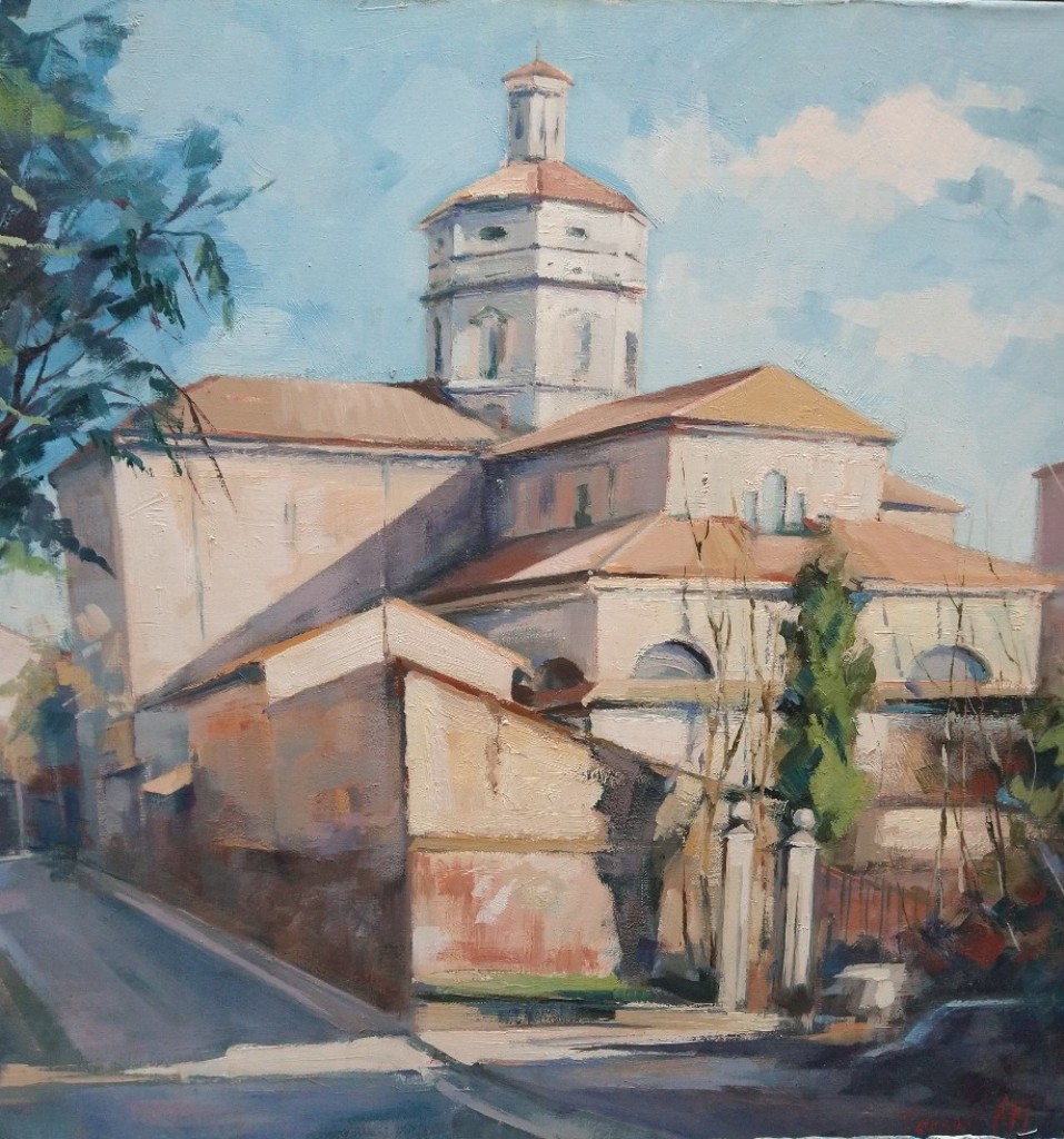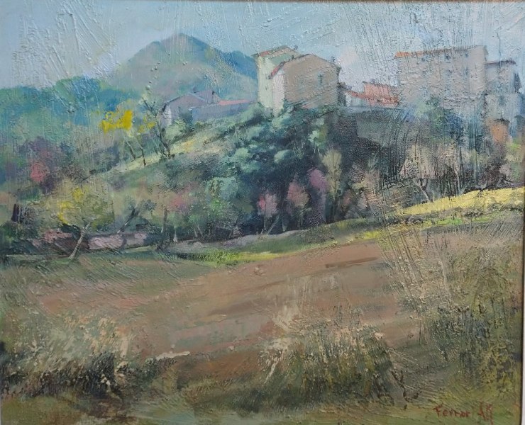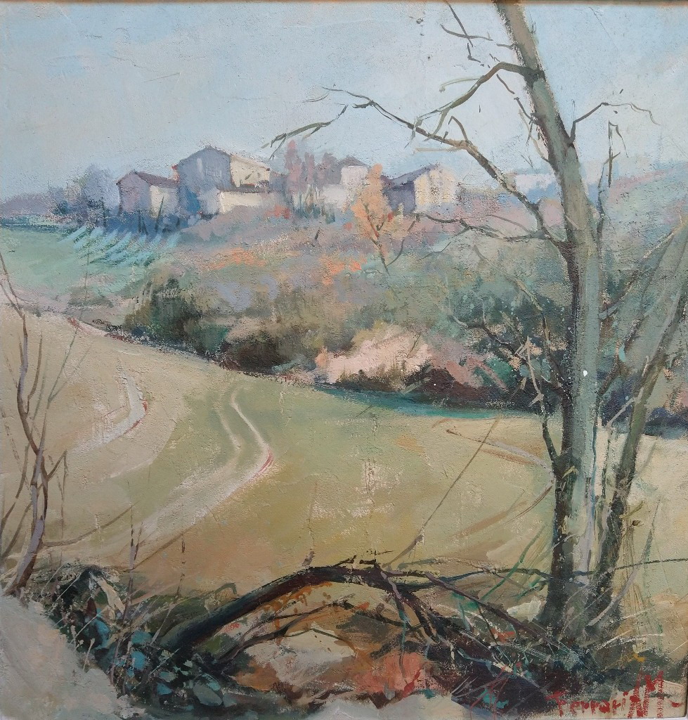 Lo stesso vale per la pittura, forte e vigorosa, libera e potente, scultorea quasi, nel suo prorompente vigore. Così le due forme artistiche, pittura e scultura, finiscono per fondersi e contaminarsi fino a formare un “unicum”, una cosa sola, dove la materia, intesa proprio come spessore, volume e tridimensionalità, è protagonista indiscussa di ogni sua creazione. Allora i suoi stupendi paesaggi, riferiti per lo più alla vallate piacentine, si vestono di una forza prorompente, il colore si fa materia densa e corposa, traccia solchi e avvallamenti, a volte diventa opaco e rugoso come la terra, altre volte, invece, acquista la leggerezza dell'aria e delle nuvole. Pittura che denota forte personalità, sicurezza d'esecuzione e taglio compositivo moderno e contemporaneo. E lo stesso vale anche quando l'artista affronta le tematiche legate alla “figura umana”. I suoi personaggi, infatti, rivelano sempre grande senso plastico, morbidezza e forza espressiva unite, molto spesso, ad una sottile e velata malinconia che li avvolge di una sentita carica poetica.