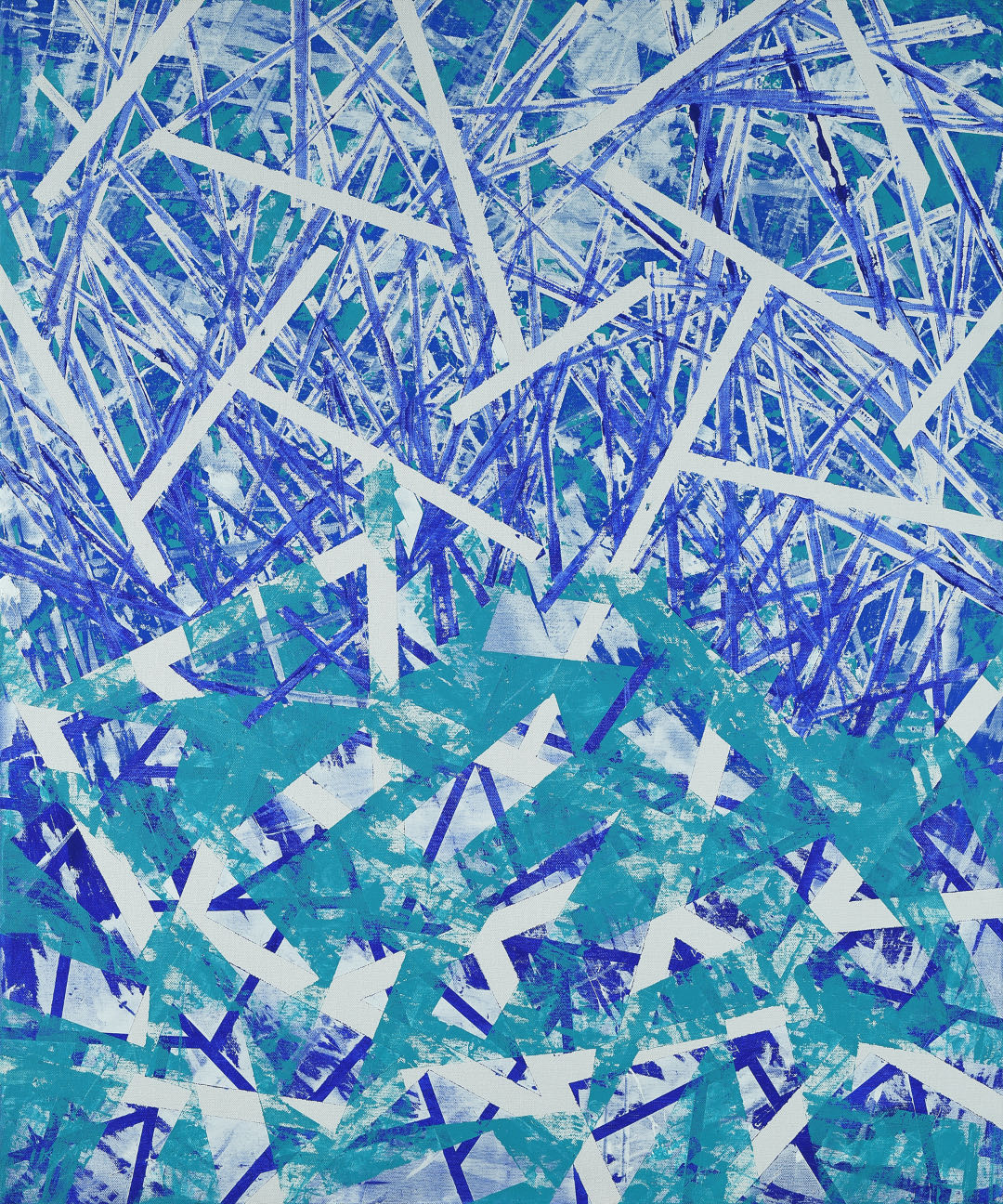 Punto di partenza del progetto, afferma Elisabetta Roncati autore del testo critico, è stata la riflessione sul tradizionale "paesaggio blu-verde" della pittura a inchiostro cinese (“The blue-green shan shui”). Il nome di questo stile deriva dall’utilizzo di pigmenti minerali quali l'azzurrite e la malachite come colori principali che riflettono l’essenza della natura e la saggezza orientale. Un’importante fonte di ispirazione per Qian Wu non solo a livello visivo, ma anche e soprattutto spirituale. Alle due tonalità l’artista attribuisce, infatti, dei significati che vanno al di là della cromia per arrivare alla sfera emotiva. Insegue i principi di tempo e spazio e riflette sulla possibilità di connettere concetti opposti quali “ordine” e “disordine”, “costruzione” e “decostruzione”, secondo un principio di connessione che ricalca quello di Yin e Yang.