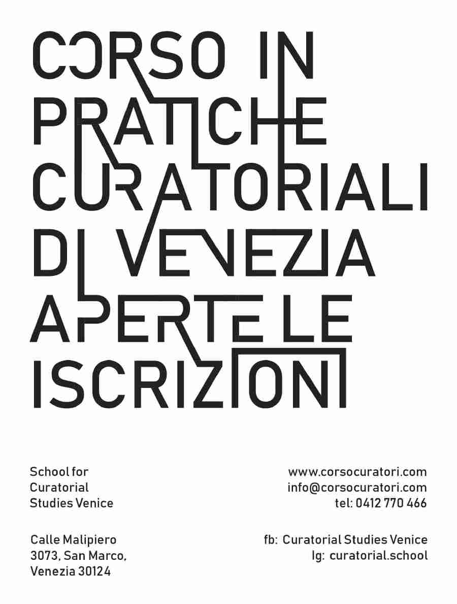 OPEN CALL Aperte le iscrizioni al 29° Corso in Pratiche Curatoriali e Arti Contemporanee School for Curatorial Studies Venice
