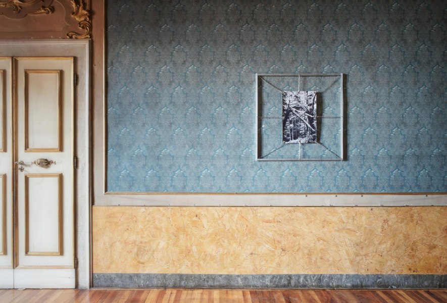 Il lavoro che Luca Campestri ha condotto durante i mesi di residenza si edifica attorno ad alcuni temi, fondanti nella sua pratica, che l’ambiente fortemente connotato di Palazzo Vizzani ha plasmato e supportato: tra di essi l’idea di spettro in quanto presenza parziale (né viva né morta), e i temi adiacenti di infestazione, coercizione ed esplorazione interiore, che fanno sì che l’esperienza dell’open studio si conformi come l’esplorazione di un mindscape popolato di catalizzatori narrativi frammentari. La presenza infestante – divisa tra corporeità ostile, coercitiva e lacerante, e fisicità parziale, compromessa – delle opere-ambiente fa riferimento al concetto, centrale nella sua produzione, di hauntology. Il concetto derridiano indica la dimensione virtuale di ciò che non è più ma continua a manifestarsi nella realtà e ciò che non è ancora ma i cui effetti precedono la messa in atto: tali le modalità dell’essere hauntologico, diviso tra coazione a ripetere e disgregazione mnemonica. L’artista ha dunque realizzato degli ambienti all’interno dei quali opere fotografiche dotate di una presenza installativa si vincolano in maniera indissolubile alle sale di Palazzo Vizzani. Campestri si è inserito nelle sale di Alchemilla innestandole e legandovi le sue opere, infestandone gli spazi nel tentativo di evocare una dimensione di soglia, un’eterotopia ambigua quanto la categoria di spettro.