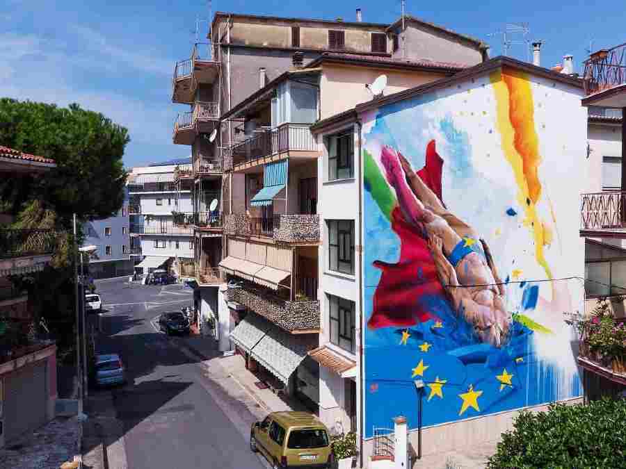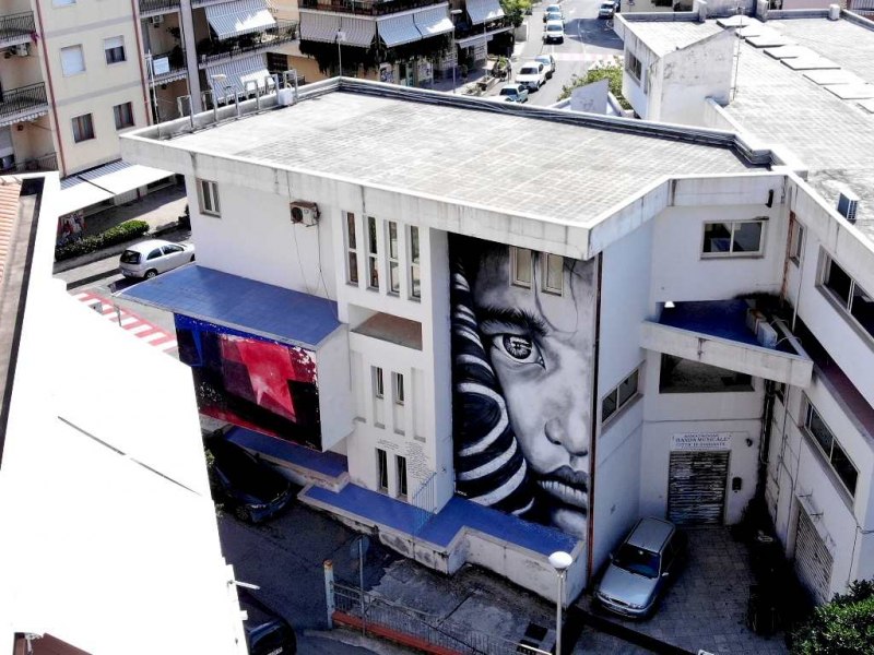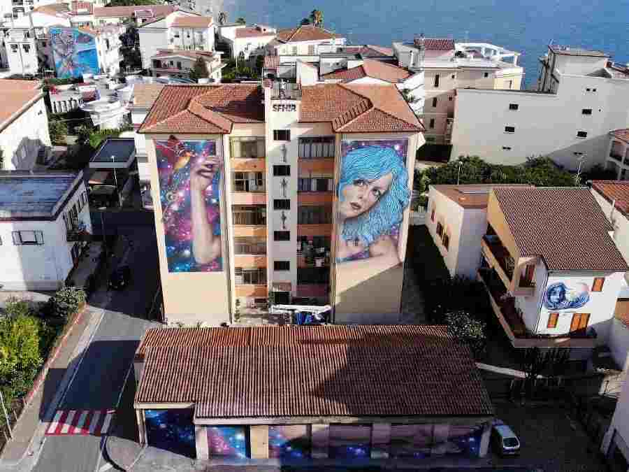 L’opera che vedrà la luce a Vietri è una riflessione del noto street artist calabrese che ritrae una bambina mentre annaffia la sua terra, simbolo del rispetto dell’ambiente, dell’appartenenza alla propria storia ed esempio di purezza e legalità. Un murales monumentale, per dimensioni ed estensione, che regalerà una visione anamorfica della realtà: da un determinato punto di vista, stabilito prospetticamente, illuderà i fruitori/passanti sulle dimensioni del palazzo, confondendosi e integrandosi con il paesaggio circostante e la con skyline all’orizzonte.