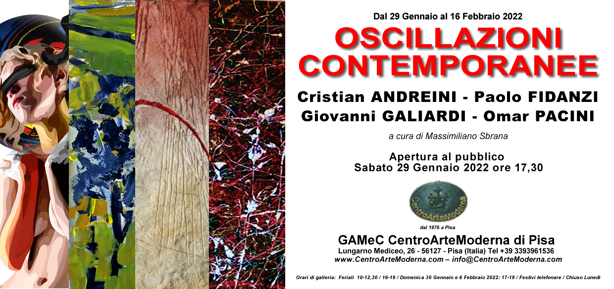 Si aprirà Sabato 29 Gennaio 2022 alle ore 17,30 presso il GAMeC CentroArteModerna di Pisa (Lungarno Mediceo n.26) la VENTIDUESIMA edizione di OSCILLAZIONI CONTEMPORANEE (OC22).