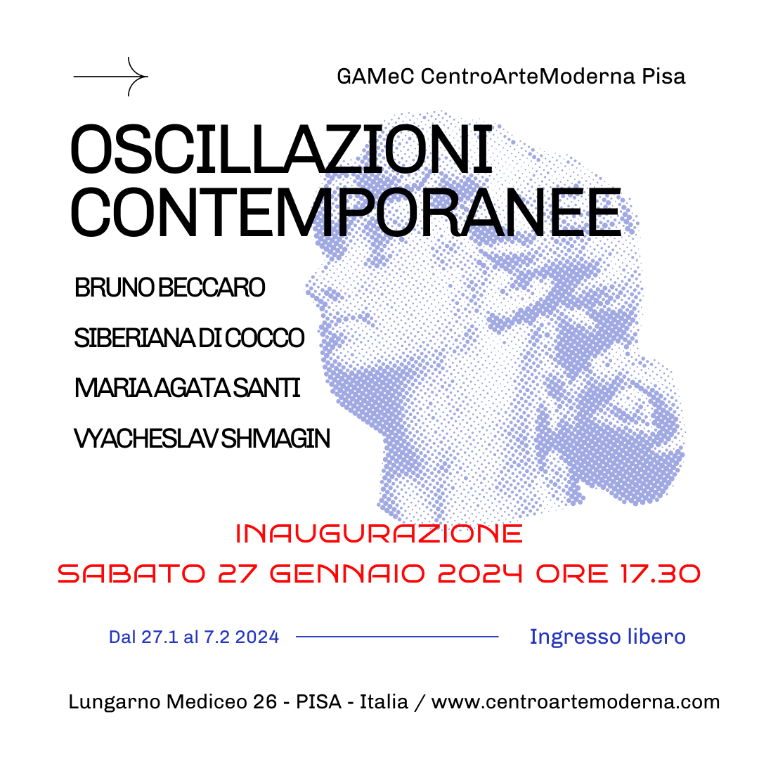 Si inaugurerà Sabato 27 Gennaio 2024 alle ore 17,30 presso il GAMeC CentroArteModerna di Pisa (Lungarno Mediceo n. 26) la XXIVa edizione di OSCILLAZIONI CONTEMPORANEE (OC23).