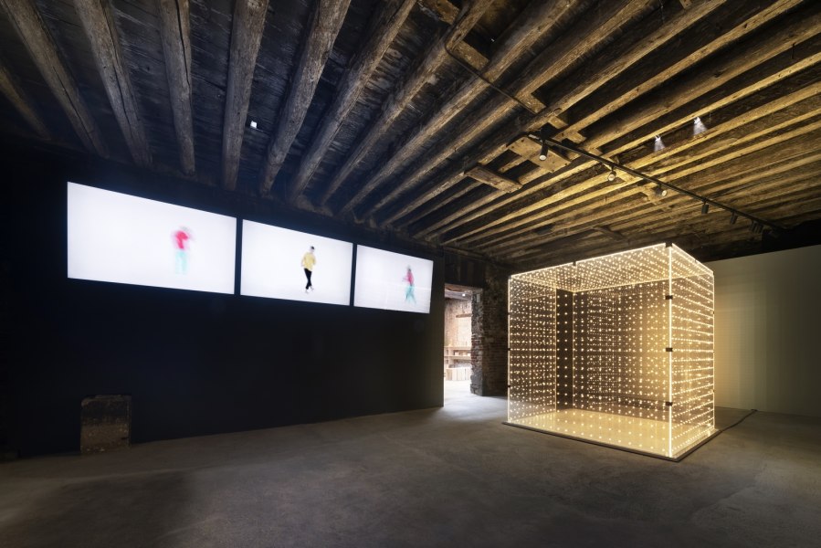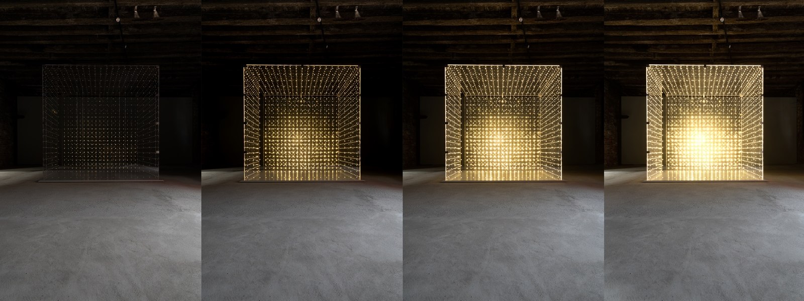 Per il Padiglione della Repubblica di San Marino, Vittorio Corsini ha realizzato tre opere inedite, tenendo presente non soltanto il tema portante dell’ospitalità, ma anche la natura, la storia e la morfologia dello spazio nel quale sono state collocate. Esercizio 2 si presenta come un cubo in plexiglas, quasi una stanza, nella quale entrare per raggiungere una dimensione intima, favorita da un alito luminoso esemplato sul respiro umano in meditazione. Benvenuti in città si compone di tre video in cui alcuni giovanissimi danzano sulla “loro” musica, che rimane però negata allo spettatore. Primo video mai realizzato da Corsini, Benvenuti in città interagisce con lo spazio esterno, e in particolare con il vento, che determina la velocità del movimento. Terza ed ultima opera Welcome chairs ovvero una coppia di sedie in bronzo poste all’esterno della Fucina del Futuro, invito alla sosta e alla conversazione. Una scultura in cui la narrazione diventa fatto architettonico.