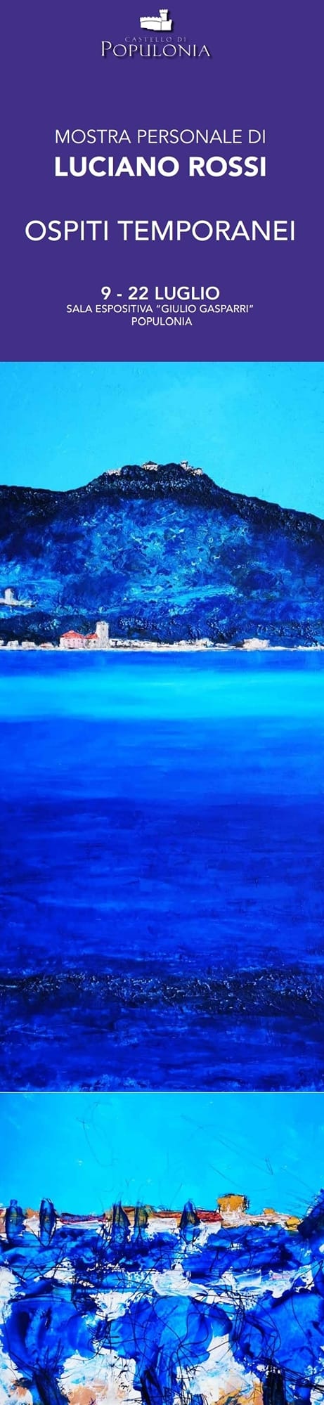 Le calde, infuocate o acquoree, accattivanti, tavole pittoriche di Luciano Rossi, prendono la scena ancora fino al 22 luglio 2022, nella mostra personale “Ospiti Temporanei” in corso nella Sala espositiva Gasparri del Castello di Populonia (Piombino-LI).