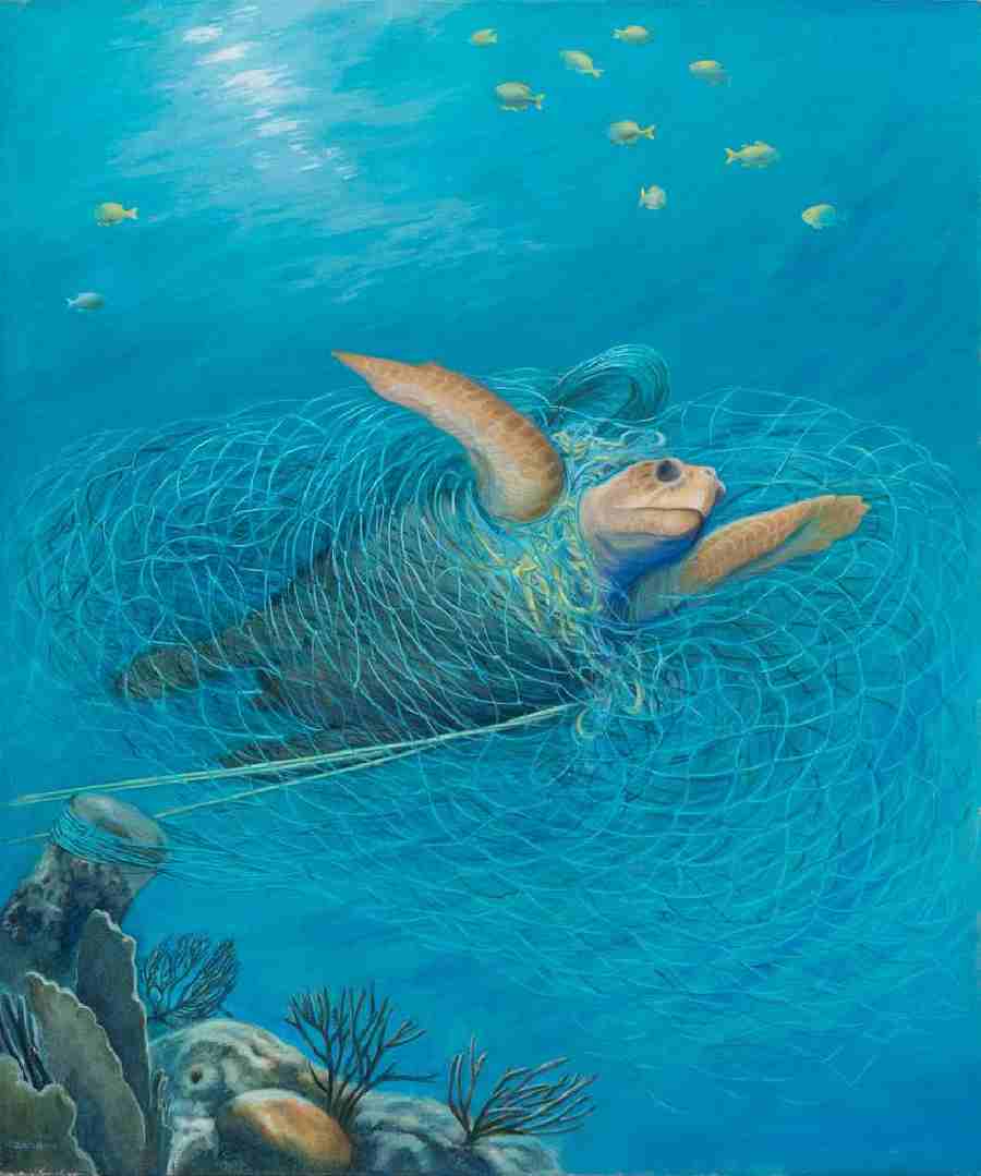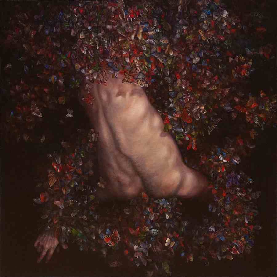L’esposizione propone al visitatore le terrecotte e i bronzi di Ettore Greco la cui ricerca sull’interiorità dell’essere umano chiede alla materia di suggerire più che imitare volti e corpi. La lettura dei suoi soggetti non può prescindere dalla luce e dal modo in cui cade e impregna una bocca, una fronte, un gesto. L’apprezzato scultore padovano che insegna all’Accademia veneziana, non insegue la mimesis, cioè la rappresentazione visiva, semmai indaga passioni e sentimenti. Anche David Dalla Venezia si muove intorno all’uomo e al senso dell’essere qui e ora sulla terra. Lo strumento tuttavia non sono gli altri, ma se stesso. Il pittore è insieme autore e attore, creatore e oggetto, essere vivente e natura morta. Forza e silenzio. La sua tavolozza di bruni, ocra, neri pacati e bianchi gessosi, si colora talvolta di blu e rossi cui l’artista affida la cattura dello sguardo. Come accade nei due grandi dipinti in cui il protagonista si immerge dentro un nugolo di farfalle. Che dicono sogni pensieri ricordi. Fulvia Zambon, ritrattista molto nota nel panorama newyorkese, torna al suo studio sospeso tra cielo e laguna con una serie di tele dedicate all’acqua, al mare e al rapporto amniotico che l’uomo intesse con il mondo liquido. Talvolta le figure vi si immergono liberandosi del peso corporeo e lasciandosi andare alla serenità; in altri casi nuotano attorniate da animali dolorosamente uccisi dai veleni di cui la nostra razza ha riempito il ventre degli oceani.