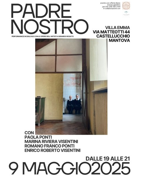 L’installazione interattiva Oltre Forma di Gerardo Rosato si inserisce nel contesto della performance PADRE NOSTRO di Pola Ponti e Marina Riviera Visentin, offrendo un’esperienza immersiva e simbolica. Si configura come un dispositivo poetico capace di intrecciare gesto e materia, memoria e visione, generando un dialogo visivo e performativo.