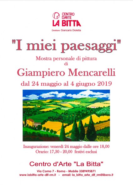 Giampiero Mencarelli è pittore e scultore, paesaggista, ama spaziare tra i tanti messaggi che invia la natura cercando di decifrarli e trasferirli sulla tela:un paesaggio inteso quindi non solo come descrizione ma come interpretazione dei tanti modi con cui la natura si manifesta.