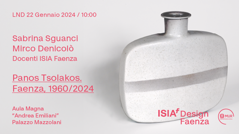 Lunedì 22 gennaio alle ore 10, l'ISIA di Faenza ospita una conferenza nell'ambito del progetto Panos Tsolakos. Faenza, 1960/2024 con relatori Sabrina Sguanci e Mirco Denicolò.