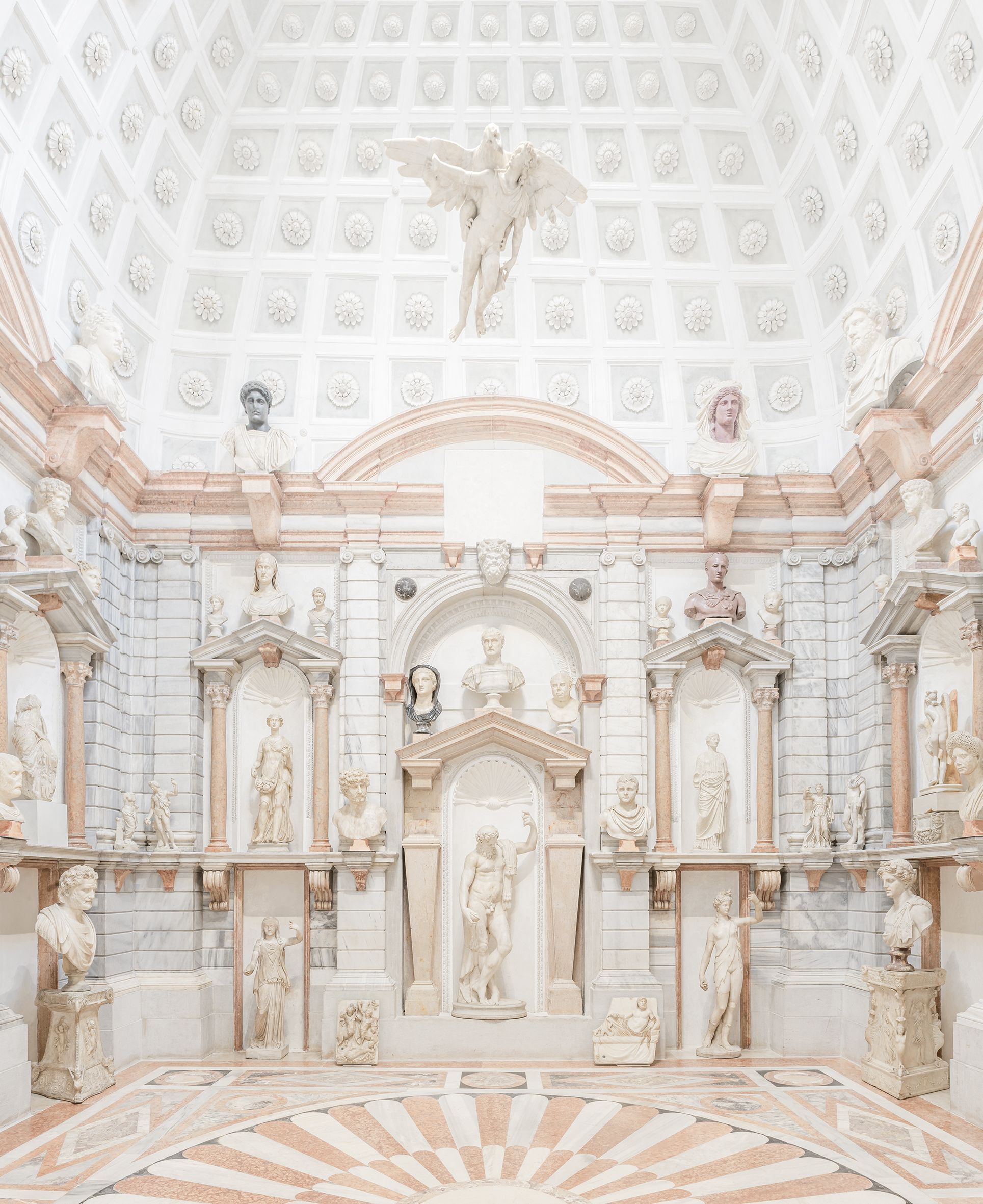 I celebri siti del patrimonio culturale italiano da lei reinterpretati – tra cui il Teatro Farnese di Parma, il Teatro alla Scala di Milano, il Teatro Scientifico Bibiena di Mantova, la Reggia di Venaria, la Palazzina di Caccia di Stupinigi, tutti esposti nella mostra milanese – giungono a chi li osserva carichi di storia, come facenti parte di un flusso in continuo divenire, ma anche, allo stesso tempo – complici la luce, la nettezza delle linee e uno straniante pallore classicista – sospesi come in una pausa, in un intervallo immobile ed eterno: è il tempo dell’attesa, che è la cifra stessa dell’operare fotografico.