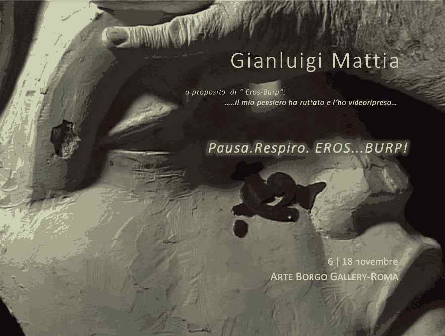 Eros –burp, un unicum creativo nella vastissima produzione di Gianluigi Mattia, realizzato nel 2004 (con la collaborazione altamente tecnica e la grande sensibilità di Christian Paraskevas), affronta il problema ontologico per eccellenza, il mistero e la complessità della nostra esistenza attraverso il suo paradigma: il CORPO. Corpo come Totem, in grado di declinarsi a molteplici e diversamente intriganti Enigmi.