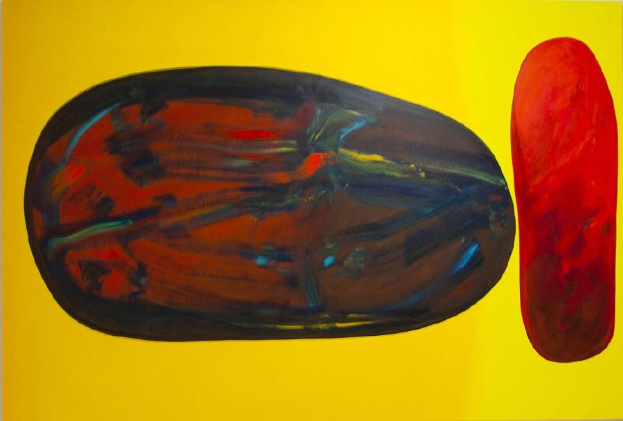 L’ultima mostra cipriota ha un titolo molto efficace: No relation, quasi una chiusura dei discorsi. In queste tele ci sono delle masse sorde o colorate che si avvicinano, quasi a toccarsi, ma non si toccano, e i fondali sono luminosi e coloratissimi. Nonostante quei vivaci cromatismi, le due realtà sono chiuse ciascuna nel proprio mondo e separate da uno spazio minimo. Quello spazio, per quanto minimo, millimetrico, è insuperabile, resta come limite, come confine, e ogni opera finisce per concentrarsi in quel piccolo vuoto senza nome, che ognuno può interpretare come vuole ma è difficile credo non percepire l’inquietudine, il turbamento generato da una distanza minima che resta sempre una distanza, e forse non si può nemmeno considerare minima. Tutto è relativo. Il piccolo può essere infinitamente esteso.