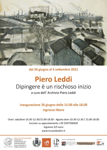 ra Treppiede – Direttore Museo Civico Floriano BodiniProsegue con questa iniziativa il progetto del Museo Civico Floriano Bodini dedicato al Realismo Esistenziale e alla Nuova Figurazione. La mostra “Piero Leddi. Dipingere è un rischioso inizio”, cui si aggiungerà anche il volume dallo stesso titolo a cura di Mariachiara Fugazza per la collana “Archivi di Nuova Figurazione” a cura di Sara Bodini e Luca Pietro Nicoletti, pone al centro dell’attenzione il percorso giovanile di Leddi culminato nelle personali della fine degli anni Cinquanta. Originario dell’Alessandrino e trasferito a Milano, in rapporto con i coetanei di Brera tra cui Floriano Bodini, cui lo lega una profonda amicizia, Leddi avvia nel decennio un’“autobiografia delle forme cercate”, per usare una sua espressione, una lunga carriera arrivata agli anni Duemila. Si riflette in questo primo capitolo un momento significativo di un itinerario individuale e collettivo: una narrazione per immagini che ci restituisce la vitalità di una ricerca aperta al rinnovamento e insieme impegnata nell’esplorare e nel difendere le possibilità e le ragioni della pittura.
