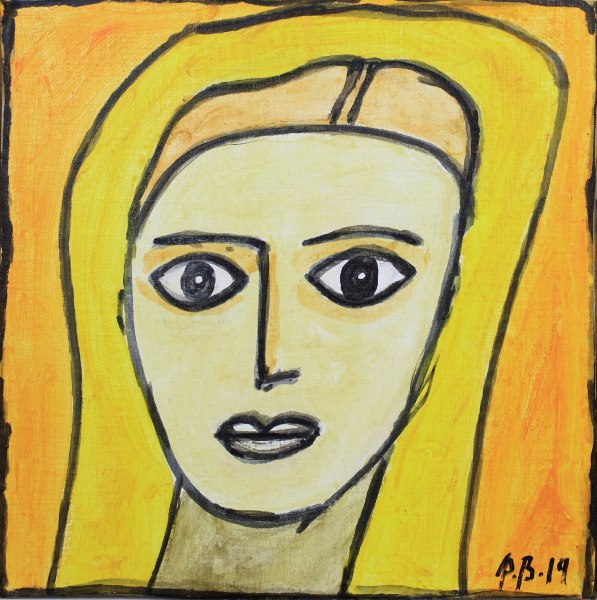 Aure e sottili velature psicologiche illuminano i volti fortemente caratterizzati di uomini e donne emersi dall’inconscio dell’artista, plasticamente incisi e semplificati con segno sicuro. La singolarità dell’icona rimanda a poetiche Outsider, Naïf e Brut, a Chaissac e Dubuffet, a Schärer e Baj e ai contemporanei Condo, Basquiat, Valdés, talora recando memoria del mondo classico, rinascimentale e barocco, e confluendo infine nel ritratto corale di una contemporanea Spoon River
