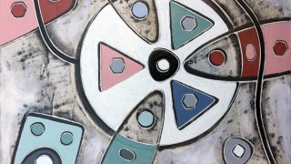 In questa nuova serie di pinakes il pittore affina gli strumenti di cui si era servito negli anni precedenti: la materia terragna e sabbiosa dei grandi quadri ispirati a Tàpies e Burri, gli strati di carta déchiré sulla scia di Villeglé e Rotella le campiture piatte e le “sculture” Brut realizzate con Annagret. La stesura raw dei materiali si arricchisce di velate trasparenze, contrasti simultanei, illuminazioni improvvise: effetti cromatici straordinari ottenuti con la complicità dei pigmenti acquistati durante un viaggio in Marocco e utilizzati parsimoniosamente nei lavori materici.