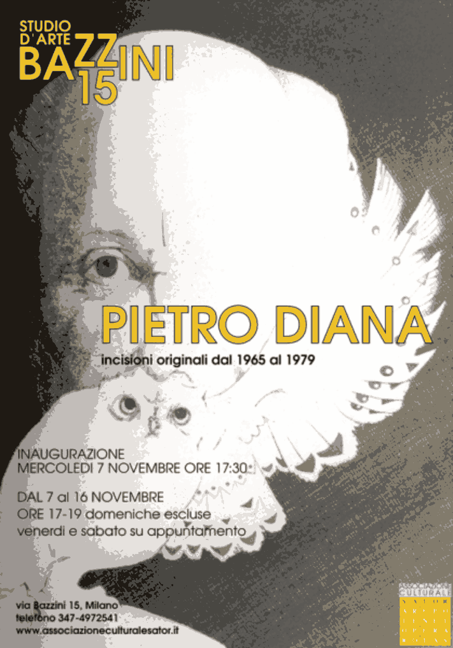 Ritorna a Milano l'opera incisa del maestro Pietro Diana. I visitatori possono ammirare le opere originali prodotte dal 1965 al 1979 appartenenti alle serie dei Castelli (1974), Castelli Fantastici (1965) e Mostri (1966). Chiude la raccolta il mitico (in tutti i sensi) Piepolitrofemo del 1979. Milanese di nascita, incisore, pittore e disegnatore, formatosi presso l’Accademia di Belle Arti di Brera si avvicina all’arte dell’incisione nel 1954. Dal 1976 al 1997 è titolare della cattedra di tecniche dell’incisione all’Accademia di Belle Arti di Brera. Specialista dell'acquaforte, sperimenta acquatinta e xilografia, la sua produzione incisoria comprende più di 800 opere. Dopo un primo periodo più naturalistico si esprime in rappresentazioni fantastiche e visionarie, ricorrenti spesso nel suo universo iconografico surreale e simbolista.