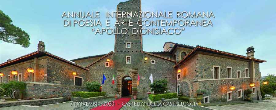 L’annuale internazionale Apollo dionisiaco celebra il senso della bellezza dell’arte poetica e figurativa di poeti e artisti affermati ed emergenti sul territorio mondiale, sabato 7 novembre 2020 dalle ore 15,15 presso il Salone del duecentesco Castello della Castelluccia in Roma.