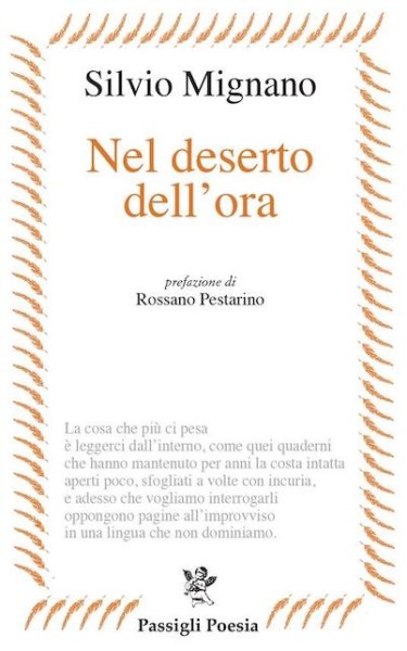 “Il nuovo libro di Silvio Mignano porta un bellissimo titolo: se il deserto sia quello dell’ora, ossia della partizione di tempo che dobbiamo quotidianamente riempire di vita, oppure quello del nunc, dell’oggi, dell’adesso, è – forse – chiarito solo molto avanti nel libro, in un testo importante, Dipingere nell’amnesia: ma in realtà credo che le due interpretazioni possano convivere. Il libro tiene fede alla bellezza e al molteplice significato del suo titolo, in quanto anche questo terzo libro di Mignano è pieno di nunc e di hic (la terza delle quattro sezioni, d’altronde, si intitola Occupare spazio): dei tanti luoghi evocati, vissuti, letti, riletti e interpretati, nella vasta esperienza della vita (anzi, delle tante vite) dell’autore, ma anche dell’intreccio tra luoghi e tempi, lontani ma non remoti, tutti presenti alla vigile volontà di una voce spesso, più che lirica, narrante di tenere insieme le fila, di contemplare la sopravvivenza dolorosa ma certa nel “deserto” (Dalla prefazione di Rossano Pestarino)