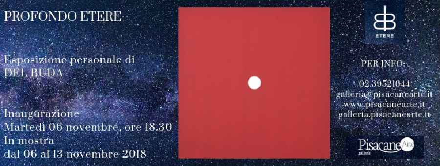 La galleria Pisacane Arte inaugura, alla presenza dell'artista, martedì 6 novembre, dalle ore 18.30 in via Pisacane 36 a Milano, la mostra Profondo etere: un'esposizione personale dedicata alle opere di Bruno Budassi in arte Del Buda, nelle quali la dimensione spazio - temporale verrà indagata, valicando tutti confini percepibili, fino ad arrivare alle sfere più elevate dell'Universo.
