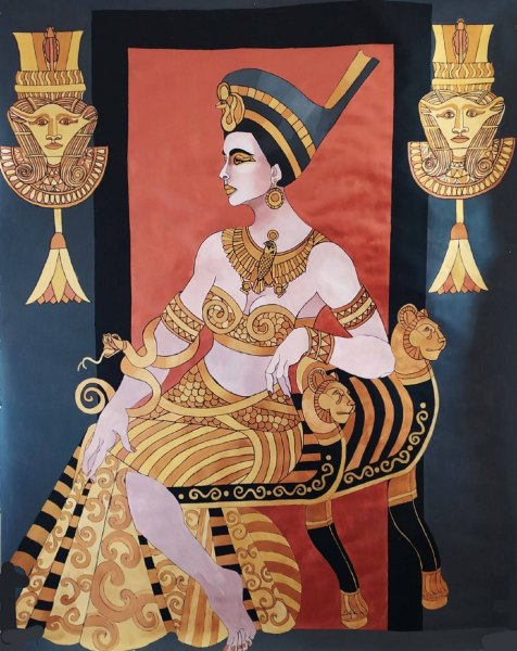 Mirella Ventura dedica alla grande Regina Cleopatra circa 25 opere in cui racconta in maniera magistrale la figura controversa dell’ultima regina d’Egitto, studiando attentamente la vita della sovrana e la complicata simbologia dell’Egitto precristiano.