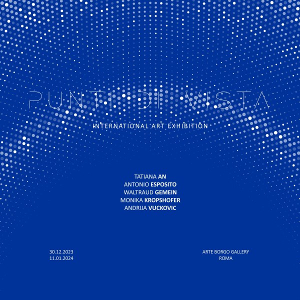 PUNTI DI VISTA è la nuova mostra collettiva presentata presso Arte Borgo Gallery dal 30 dicembre 2023 all’ 11 gennaio 2024. La mostra mette a confronto opere di artisti internazionali attraverso vari linguaggi in cui l’interpretazione è espressa attraverso Punti Di Vista singolari e profondi. Cinque artisti differenti per nazionalità dialogano tra pittura e scultura mettendo in risalto l’unicità dell’ispirazione. Una mostra in cui le opere presentate da Tatiana An, Antonio Esposito, Waltraud Gemein, Monika Kropshofer e Andrija Vuckovic intendono offrire allo spettatore la facoltà di individuare il proprio punto di vista senza rigorose condizioni.