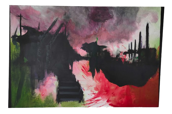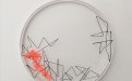 Dall’Accademia di Frosinone, Erica Cicchini presenta lavori pittorici, paesaggi su tela di ampio respiro in cui le architetture e la natura si contendono lo spazio urbano, e insieme piccoli ritratti, realizzati con spesso tratto nero, su un supporto di alluminio di cm 15x15, i coperchi delle vaschette alimentari che usiamo nelle nostre case. Angelica Loffreda sostituisce la carta con veli e chiffon su telaio, e la matita con ricami di fili neri e colori fluo, in diversi formati. Nelle trasparenze delle opere Senza titolo emerge netto un segno istintivo, realizzato senza guardare, come scrive nella sua biografia, per esprimere le emozioni interiori omettendo il senso della vista così centrale nelle arti figurative.