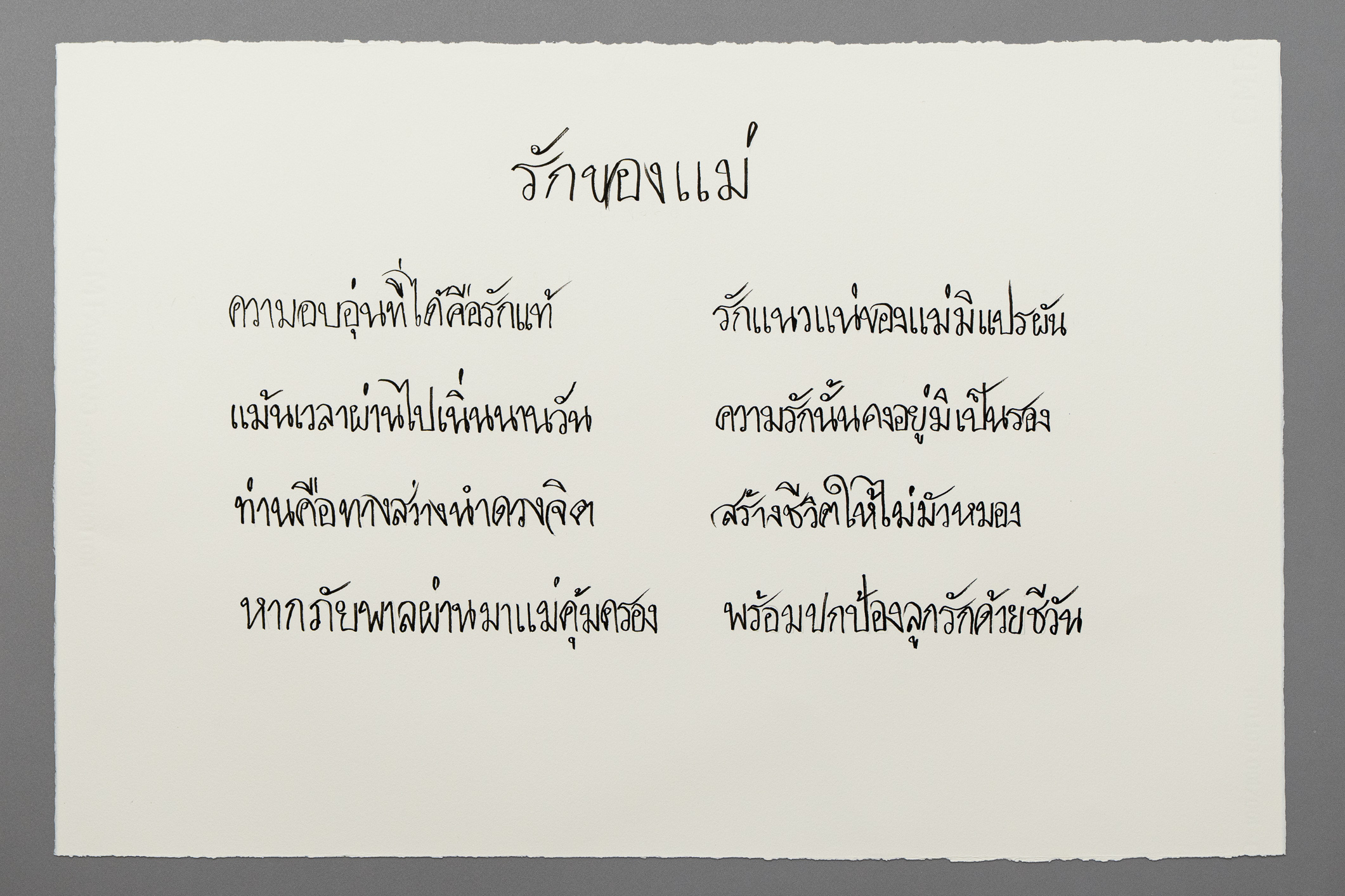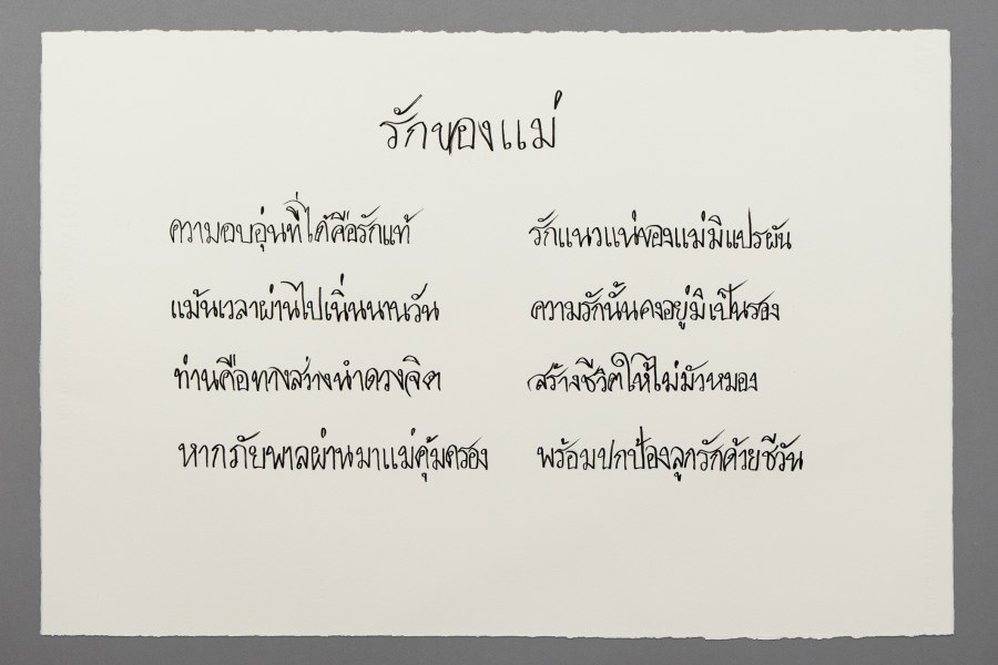 In questa mostra vengono accostati esempi di calligrafia ‘tradizionale’ orientale, provenienti da Cina, Tailandia, Corea e Giappone, a loro volta affiancati da opere di artisti contemporanei la cui ricerca si sviluppa sul tema della scrittura illeggibile, ovvero leggibile sotto altri punti di vista.