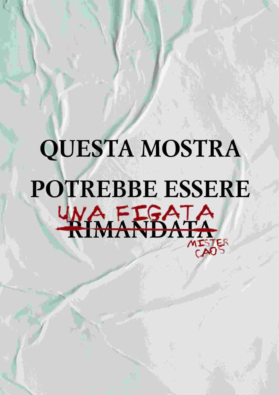 il titolo della nuova personale di MisterCaos sfida con ironia l’incertezza di questo periodo in cui cultura, arte e poesia faticano a trovare momenti per incontrare il proprio pubblico. Dopo essere stata rinviata già tre volte, la mostra si terrà (forse) dal 6 al 28 febbraio 2021 presso la galleria Visioni Altre in Campo del Ghetto Novo 2918 a Venezia.