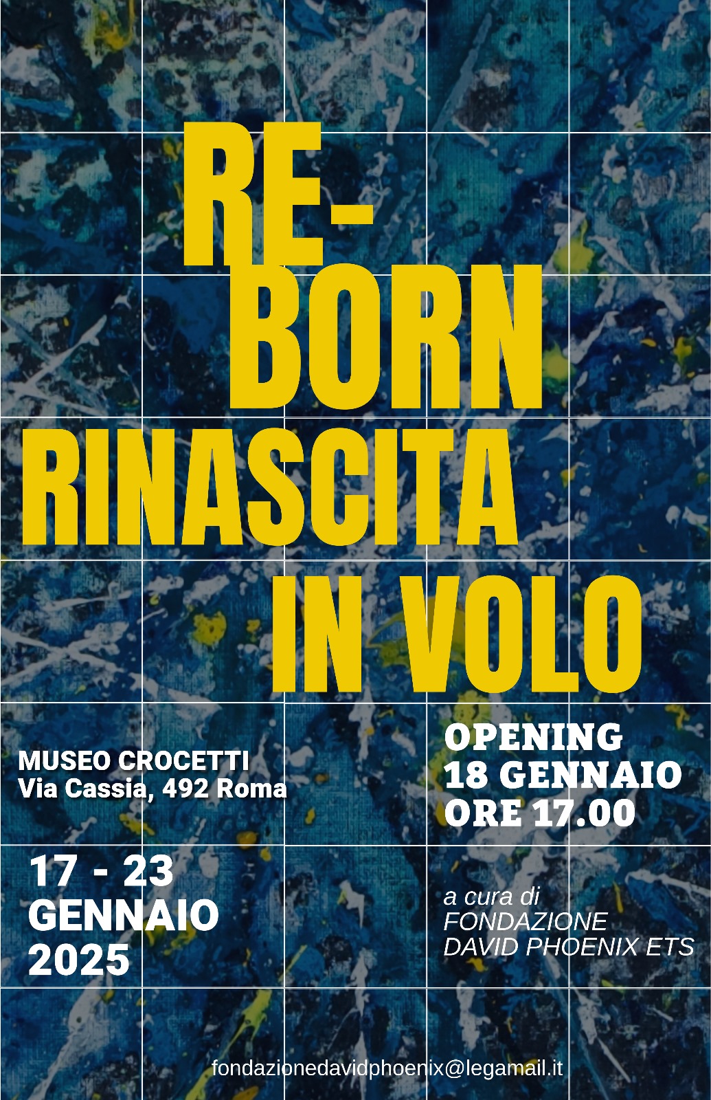 Sabato 18 Gennaio si apre al pubblico alle ore 17.00, presso il Museo Venanzo Crocetti, Via Cassia 492 Roma, la mostra “Re-Born, Rinascita in Volo” di David Phoenix, esposizione a cura della Fondazione David Phoenix ETS.