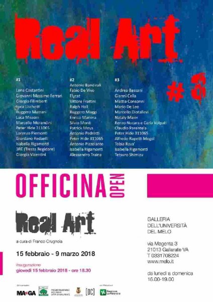 La stagione 2018 di Officina Open si apre con il progetto Real Art #1 - #2 - #3 a cura di Franco Crugnola riproposto, in questa particolare occasione espositiva, in collaborazione con Emma Zanella, Direttore del Museo MA*GA.