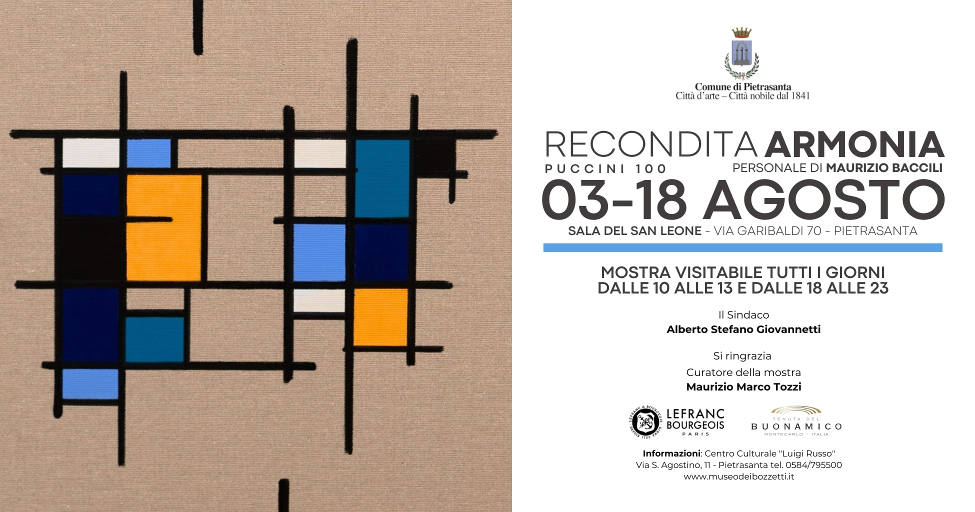 In occasione delle Celebrazioni Pucciniane si svolgerà dal 3 al 18 agosto presso la Sala del San Leone di Pietrasanta la mostra di Maurizio Baccili “Recondita Armonia – Puccini 100”.