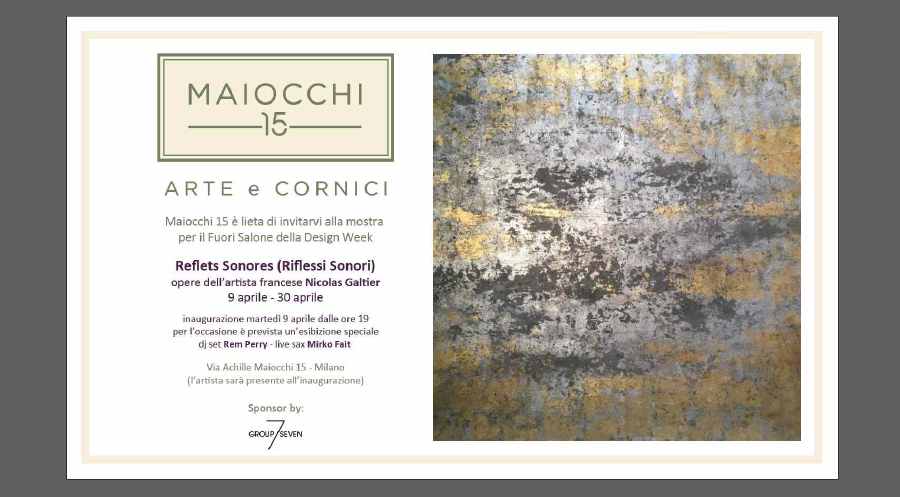 La galleria Maiocchi15 inaugura martedì 9 aprile, dalle ore 19 in via Maiocchi 15 a Milano, la mostra “Reflets Sonores (Riflessi Sonori)”, esposizione personale delle opere dell’artista francese Nicolas Galtier. L’evento s’inserisce all’interno della rassegna del Fuori Salone per la Design Week di Milano.