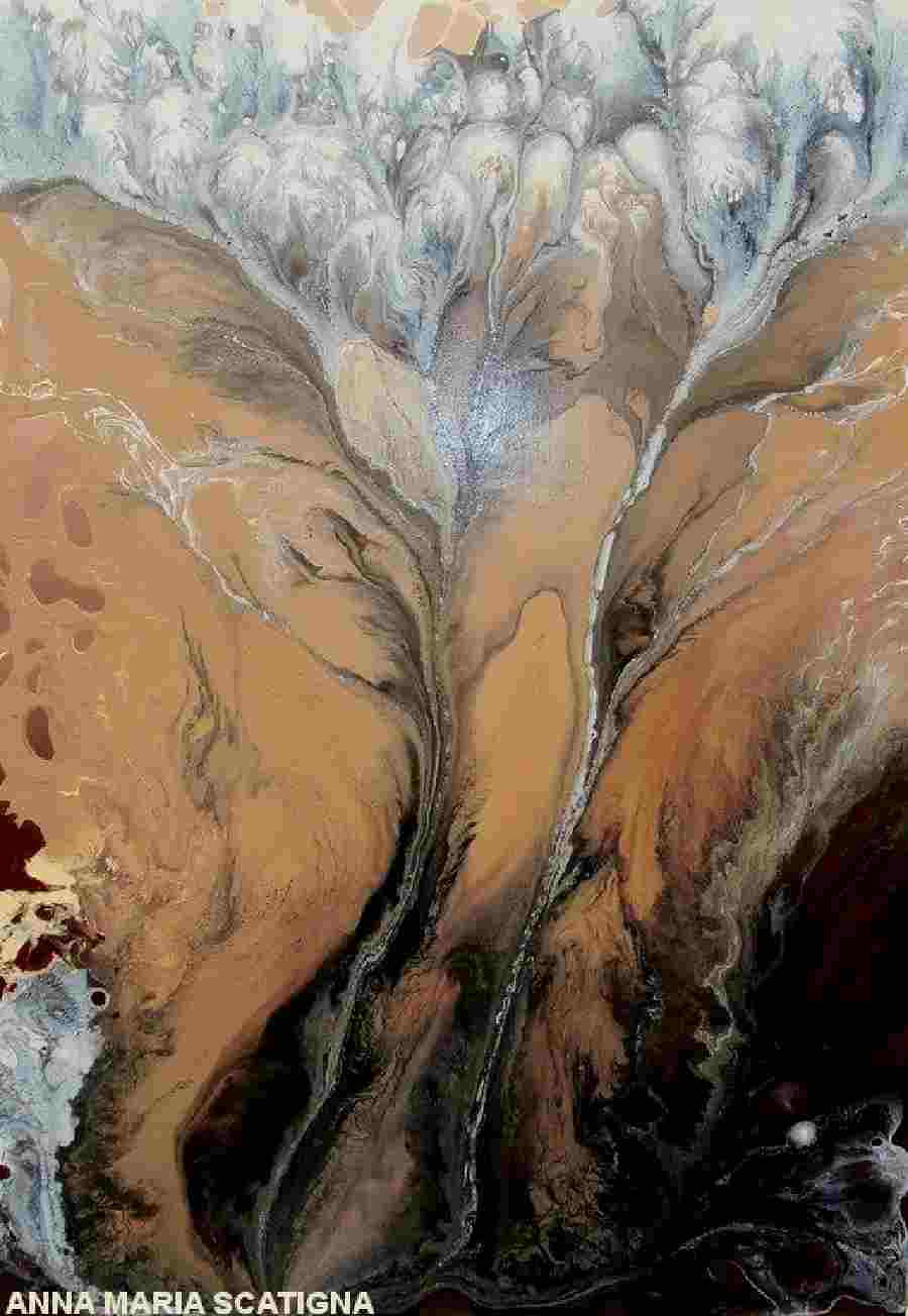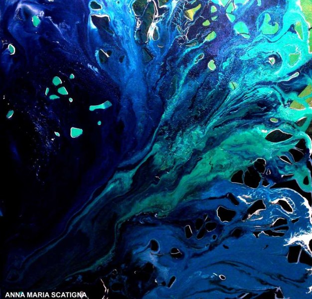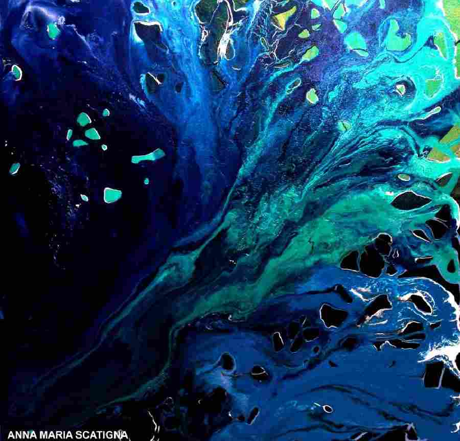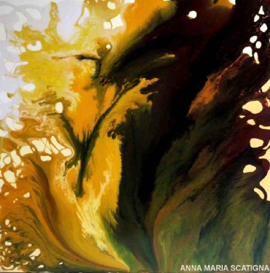 Le opere d'arte di Anna Maria Scatigna sono realizzate con colori acrilici e smalti industriali su tela.
