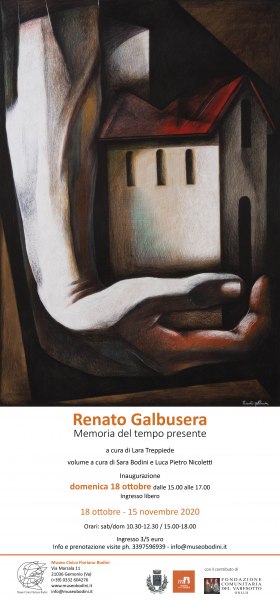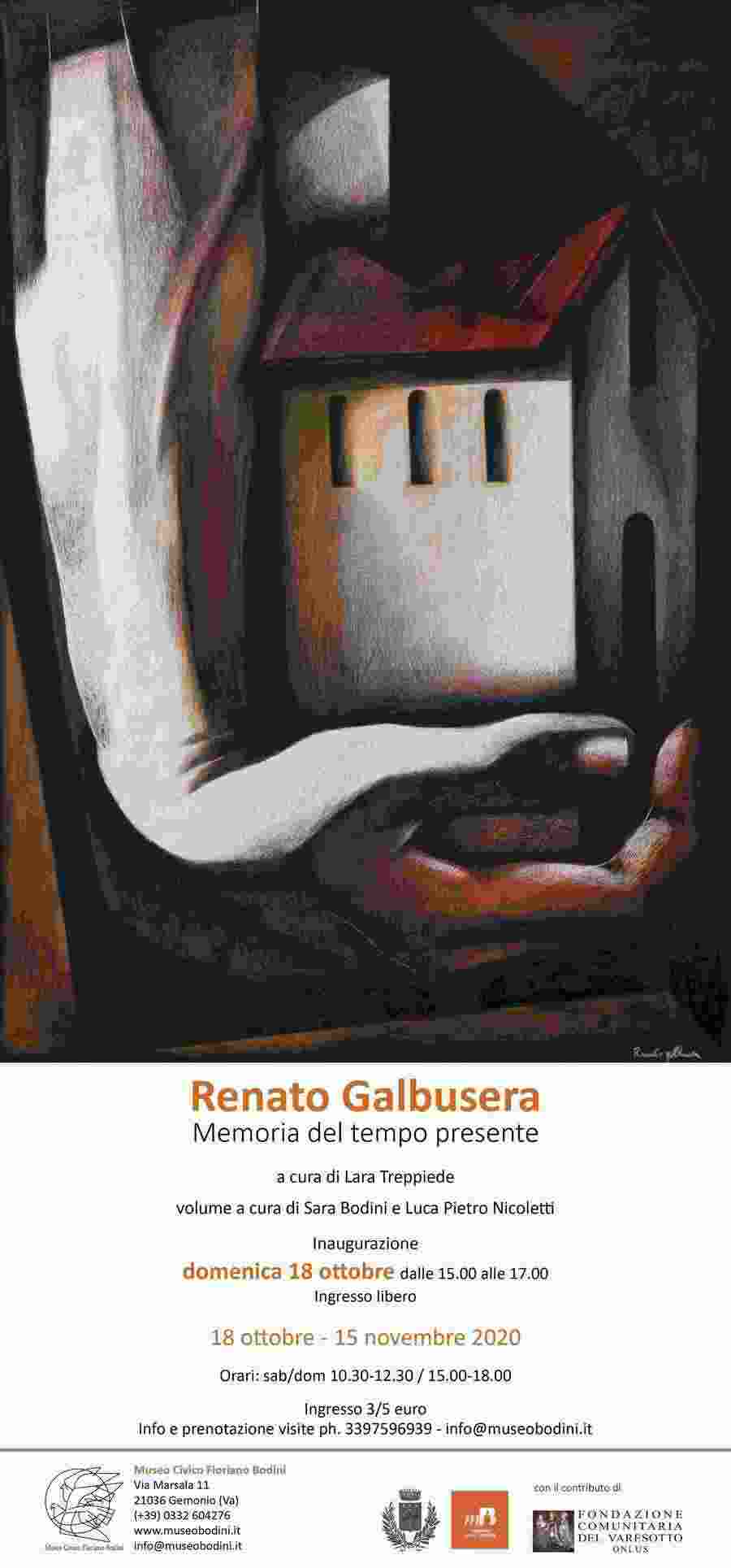 “In mostra viene presentata una selezione di opere su carta e tela che ripercorre la produzione dell’artista dalla fine degli Anni Sessanta. Proponendo la sua pittura nelle sale del Museo di Gemonio, Renato Galbusera non fa altro che aprire la porta di un luogo familiare, in un dialogo altrettanto conosciuto. Da allievo di Bodini, Galbusera ha poi ripercorso la strada del Maestro intraprendendo la carriera di docente in Accademia. La presenza di un gesso, quello realizzato da Bodini in preparazione al Monumento ai Sette di Gottinga per la piazza del Parlamento di Hannover (Germania, 1998), ritrae Galbusera in giovane età, incaricato della memoria storica, da sempre parte del percorso espositivo del Museo. Un legame con il luogo e il Maestro che perdura nei decenni e che ben contestualizza questa mostra personale, in occasione dei 70 anni dell’artista milanese”. (Lara Treppiede, Direttore del Museo Civico Floriano Bodini)