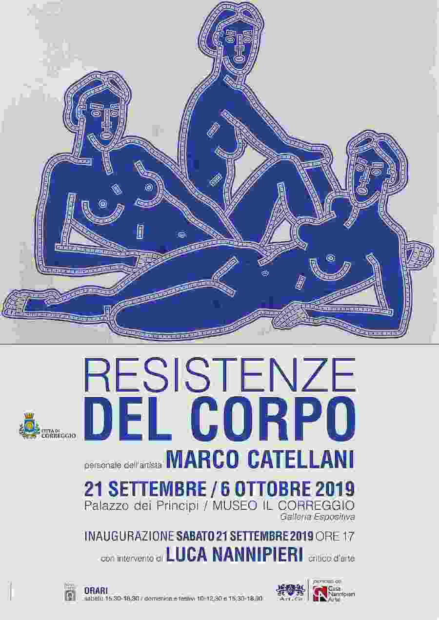 Inaugura sabato 21 settembre, alle ore 17, “Resistenze del corpo”, personale dell’artista Marco Catellani, allestita a Correggio, nella Galleria Espositiva del Museo Il Correggio, a Palazzo dei Principi, in collaborazione con Art&Co. e Casa Nannipieri Arte. All’inaugurazione interviene il critico d’arte, Luca Nannipieri.