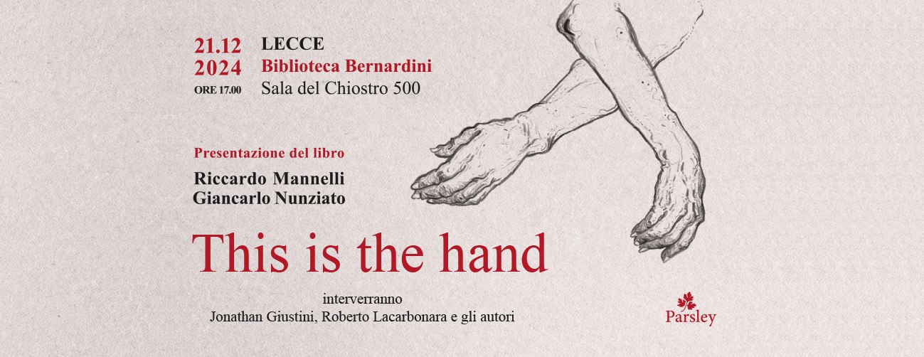 This is the hand (Edizioni Parsley, Bari 2024) realizzato da Riccardo Mannelli e Giancarlo Nunziato, con i testi di Jonathan Giustini e Roberto Lacarbonara.