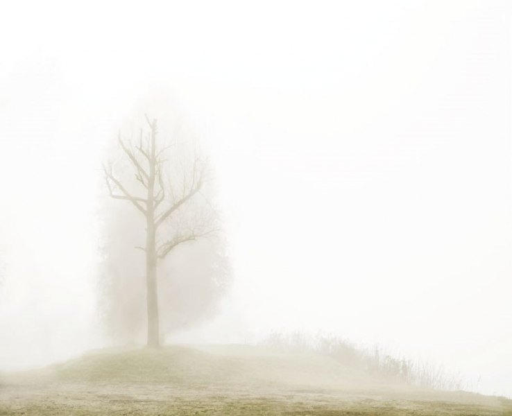 La mostra, che trae il titolo – “A Po” – da un modo di dire familiare ai vecchi amanti del Grande Fiume, per indicare il progressivo percorso di avvicinamento alle acque, presenta una selezione di paesaggi chiari: fotografie sovraesposte che diventano palcoscenico dell’Assenza, eco di quella pittura “chiarista” di matrice lombarda ricorrente nelle scelte mature di Gino Gandini, al quale l’autore riconosce un debito estetico e formale.
