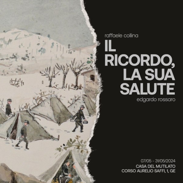 Casa del Mutilato di Genova, tramite la propria Collezione d’Arte Moderna e Contemporanea, ha la possibilità e il compito di sostenere una continua riflessione collettiva sui valori che hanno delineato (e tutt’oggi indirizzano) la propria storia di istituzione in supporto e a tutela della comunità: pace, diritti e inclusione. All’interno di un orizzonte storico scosso e sconvolto, quello che contraddistingue la quotidianità degli ultimi anni, diviene quantomai necessario mantenere costante l’attenzione sia sugli sviluppi degli avvenimenti che lo hanno compromesso sia adoperarsi singolarmente affinché la libertà non solo venga preservata ma si ricerchi laddove talvolta (ancora e drammaticamente) non sempre riesce pienamente a brillare. Il ricordo, la sua salute — seconda mostra del 2024 organizzata dalla sede genovese di Fondazione A.N.M.I.G., dopo Ombre (protagonista della rassegna internazionale “Segrete. Tracce di Memoria”) — vuole dunque stimolare, per contrasto, nel pubblico un’autocritica costruttiva volta al superamento delle soggettive tipologie d’indifferenza. In una tragica sequenza, scandita in due cupe e inequivocabili scene (raffigurate da Edgardo Rossaro e Raffaele Collina), visitatori e visitatrici potranno misurare il buio e le sue conseguenze.
