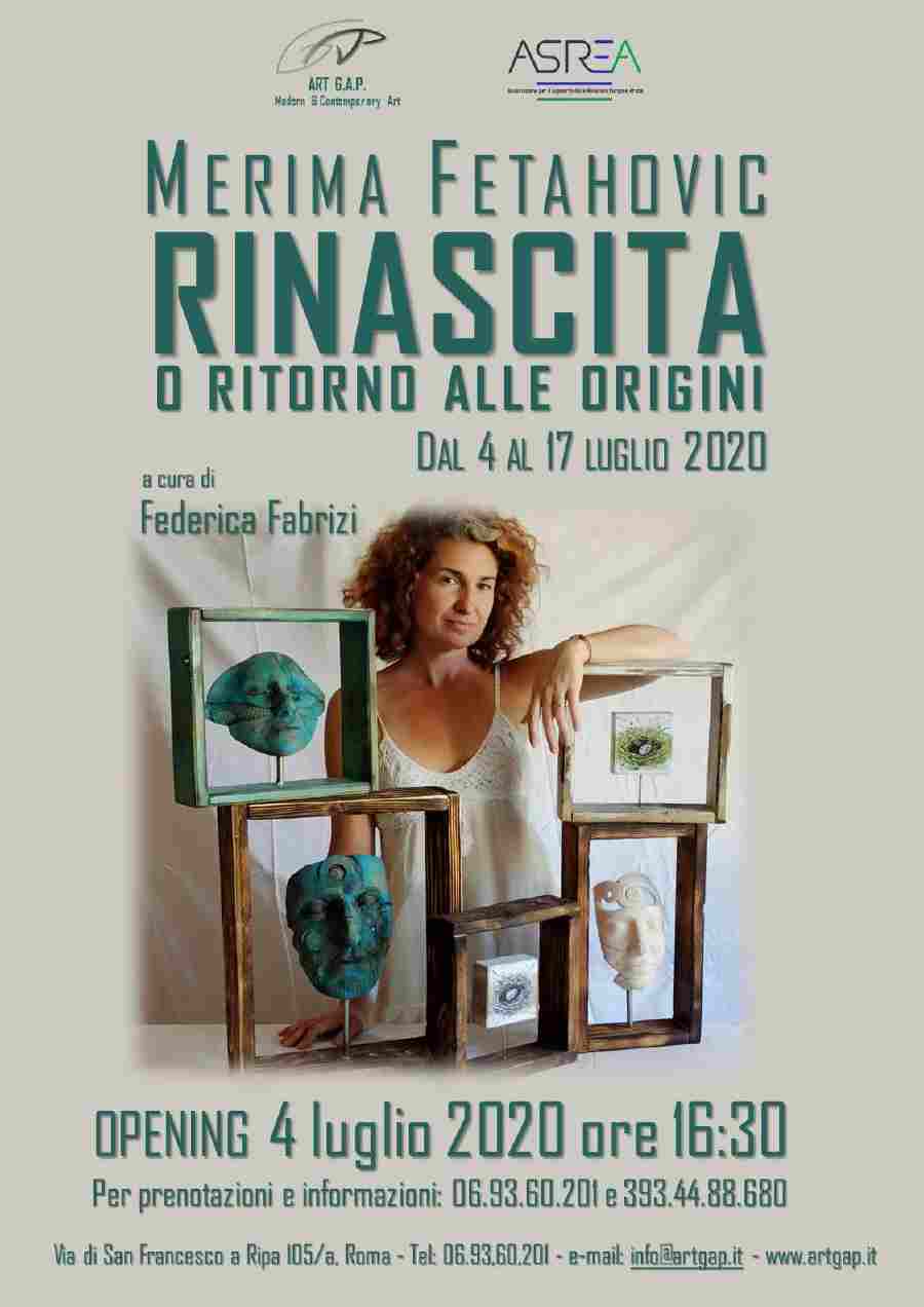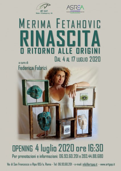 La galleria Art Gap in partnership con l’organizzazione culturale ASREA, dal 4 al 17 luglio 2020, ha il piacere di presentare RINASCITA…o ritorno alle origini, personale di Merima Fetahovic, vincitrice della sezione scultura, del primo Concorso d’Arte ASREA, svoltosi nella Sala Nagasawa ex Cartiera Latina dall’11 al 20 Ottobre 2019. La mostra verrà inaugurata il 4 luglio 2020 alle ore 16:30.