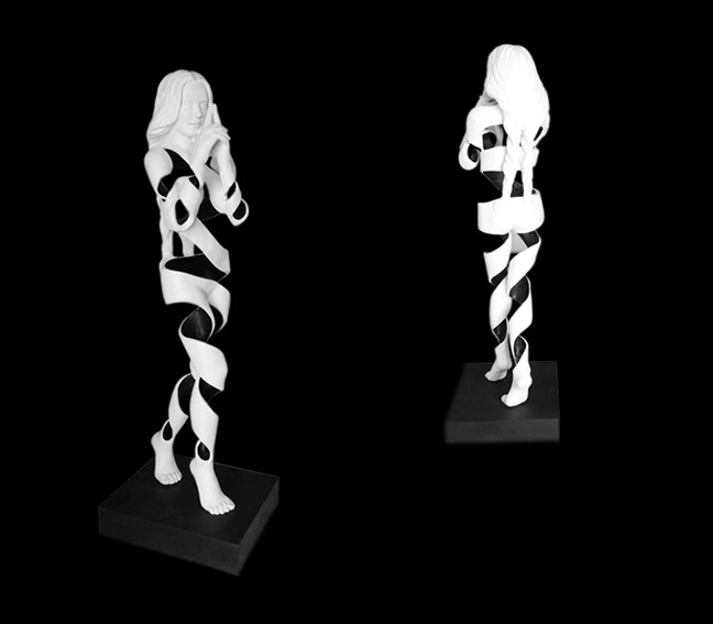 Realizzate utilizzando il marmo statuario o la fusione di bronzo con il procedimento della cera persa o in resina, le statue rappresentano un'innovazione in prima mondiale che consiste nella creazione del corpo: la struttura del suo volume è costituita da una doppia elica che si avvita su se stessa.