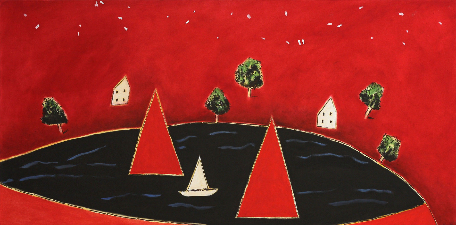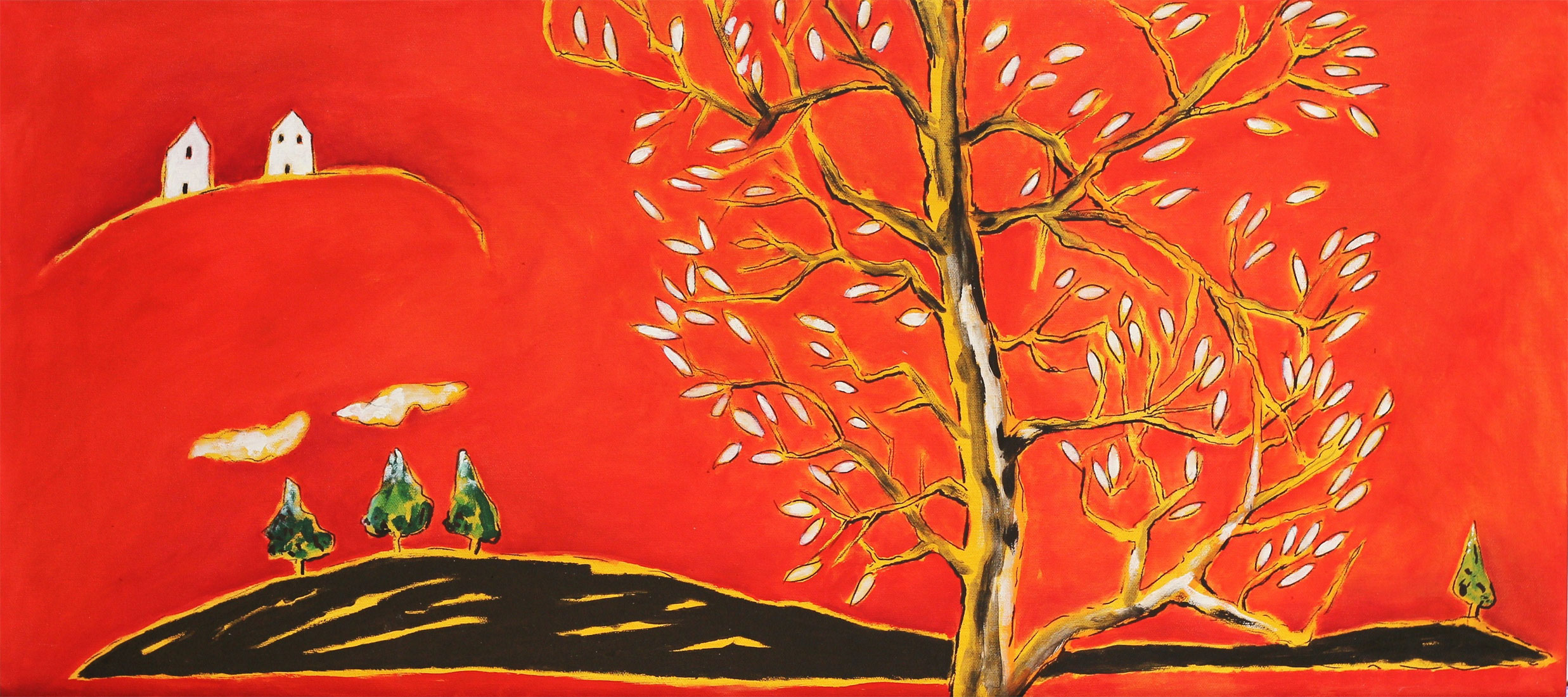 Il motivo caratterizzante delle opere in mostra è il paesaggio dal colore rosso, che testimonia la sensibilità dell’artista verso il surriscaldamento globale del pianeta ed i preoccupanti e sempre più accelerati cambiamenti climatici.