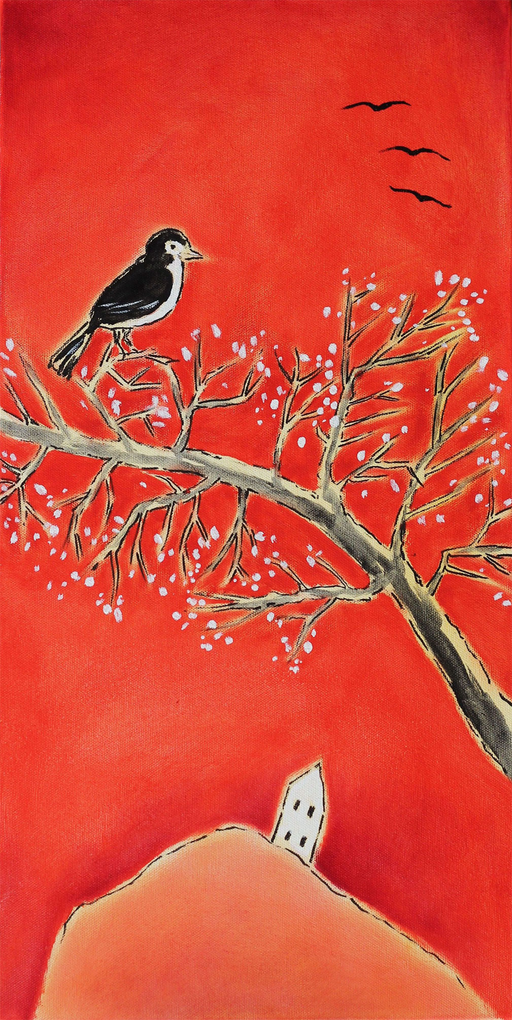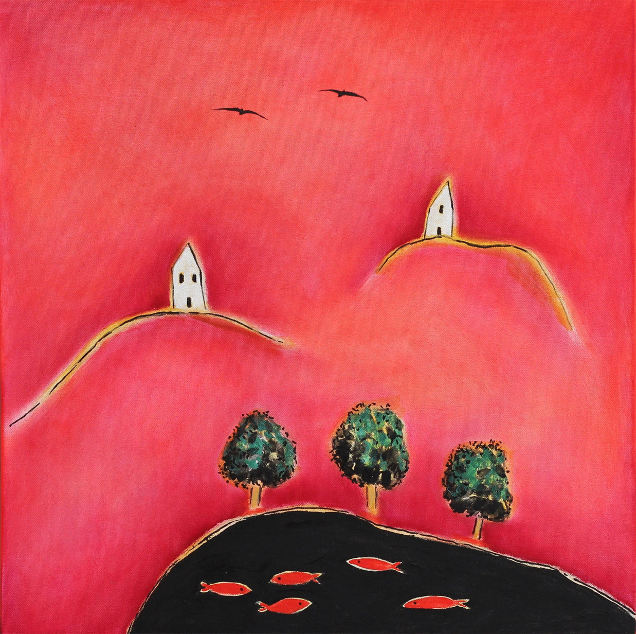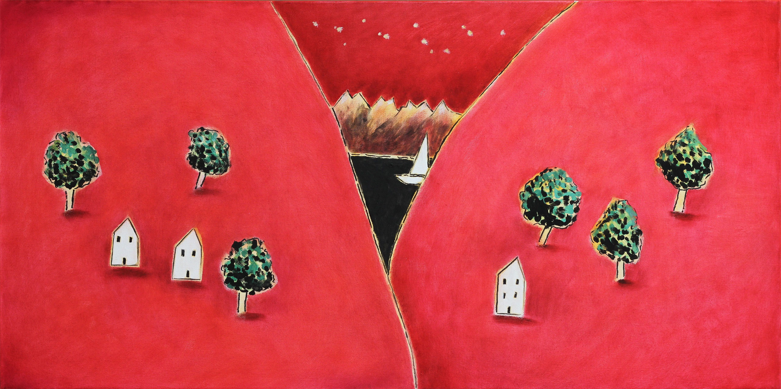 Il motivo caratterizzante delle opere in mostra è il paesaggio dal colore rosso, che testimonia la sensibilità dell’artista verso il surriscaldamento globale del pianeta ed i preoccupanti e sempre più accelerati cambiamenti climatici.