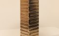 La sala 1 ospita l’installazione sonora Parole parlanti (2001-2021), attraverso cui Sabrina D’Alessandro restituisce ai vocaboli ritrovati il loro valore di opere d’arte. Seperoso, raplaplà, redamazione… parole preziose, incise in oro a caldo su tela rossa. La prima percezione è quella di un brusio generale, metafora dell’offuscamento e del graduale smarrimento delle parole nel mare magnum di un linguaggio in continua evoluzione; avvicinandosi a ciascuna parola, emerge poi la sua voce distinta: un motto, un aforisma, una poesia attraverso cui l’artista ne evoca e ne interpreta il senso. Il lavoro di Sabrina D’Alessandro gioca sempre fra domande e risposte che creano a loro volta cortocircuiti e nuove domande. Fino ad arrivare all’opera in marmo, acciaio e ottone in mezzo alla sala: il Farlingotto, «scultura poliglotta che insegna a tacere in 12 lingue» (2020, courtesy Museo d’arte per bambini | Santa Maria della Scala, Siena). Ancora, a parete, un quadro-archivio che contiene parole amate «benché non ancora resuscitate» (2010).