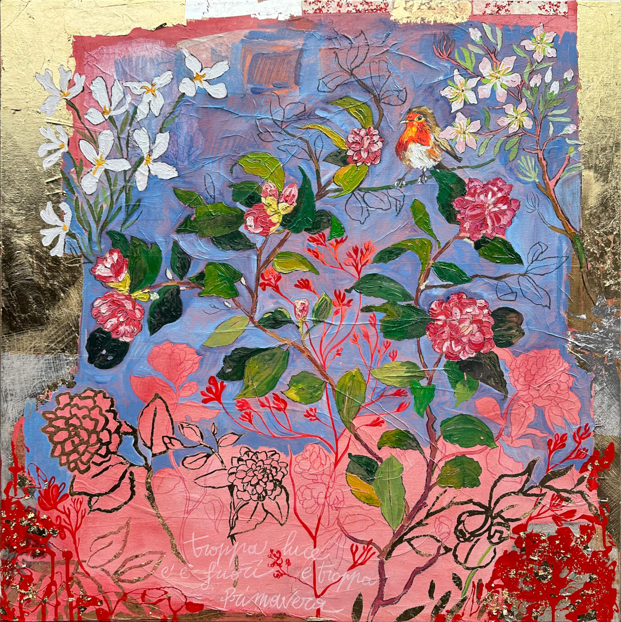 Sandra Rigali (Lucca, 1965) si diploma in Pittura all’Accademia di Firenze nel 1988 e apre lo studio prima a Barga, poi a Lucca, alternando la pittura di ricerca all’insegnamento e alle frequenti commissioni pubbliche. Indaga i temi della donna e del territorio come identità, mixando la tradizione toscana alle istanze del ‘900 attraverso il proprio segno, il colore e la materia: affresco, olio, terre, foglia oro e cemento, murales, scrittura, strappi, collage. Il suo immaginario femminile spazia dal nudo al ritratto in posa di corpi e soggetti in bilico tra autodifesa e resilienza. Tutta la natura, specchio interiore, è pervasa dallo stesso spirito, che rivitalizza ogni paesaggio, casolare o fiore. Veste di pop la cultura italiana, raccontando personalità storiche di ieri e di oggi a tinte forti e con ritagli verbo-visivi. Con l’instapainting unisce arte e social media, componendo un diario di idee, istanti e frammenti di giornale, fissati in un social wall col fare lento della pittura.