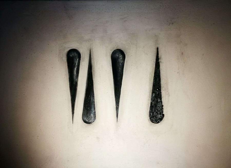 È l’alba di un nuovo Big Bang, di un nuovo inizio che esplode grazie all’energia scaturita da infinite minuscole particelle: è la forza salvifica del carbone che l’artista desidera presentare nella sua personale “SAVE” alla galleria Santandrea di Roma. Eleganti monocromie dominano l’estensione delle superfici su cui si dispongono precari equilibri geometrici, quasi a voler ricordare quello spazio infinito da cui tutto ebbe origine. Materia in continua trasformazione sia fisica che metafisica, il carbone con il suo ardere infonde un’energia e una forza che è al contempo distruttiva e soprattutto rigenerativa. Esso assurge ad emblema dello scenario universale riarso dalla corruzione e dal decadimento; “SAVE” è un invito a considerare e denunciare quell’inquinamento ecologico, sociale e culturale che caratterizza la nostra epoca.