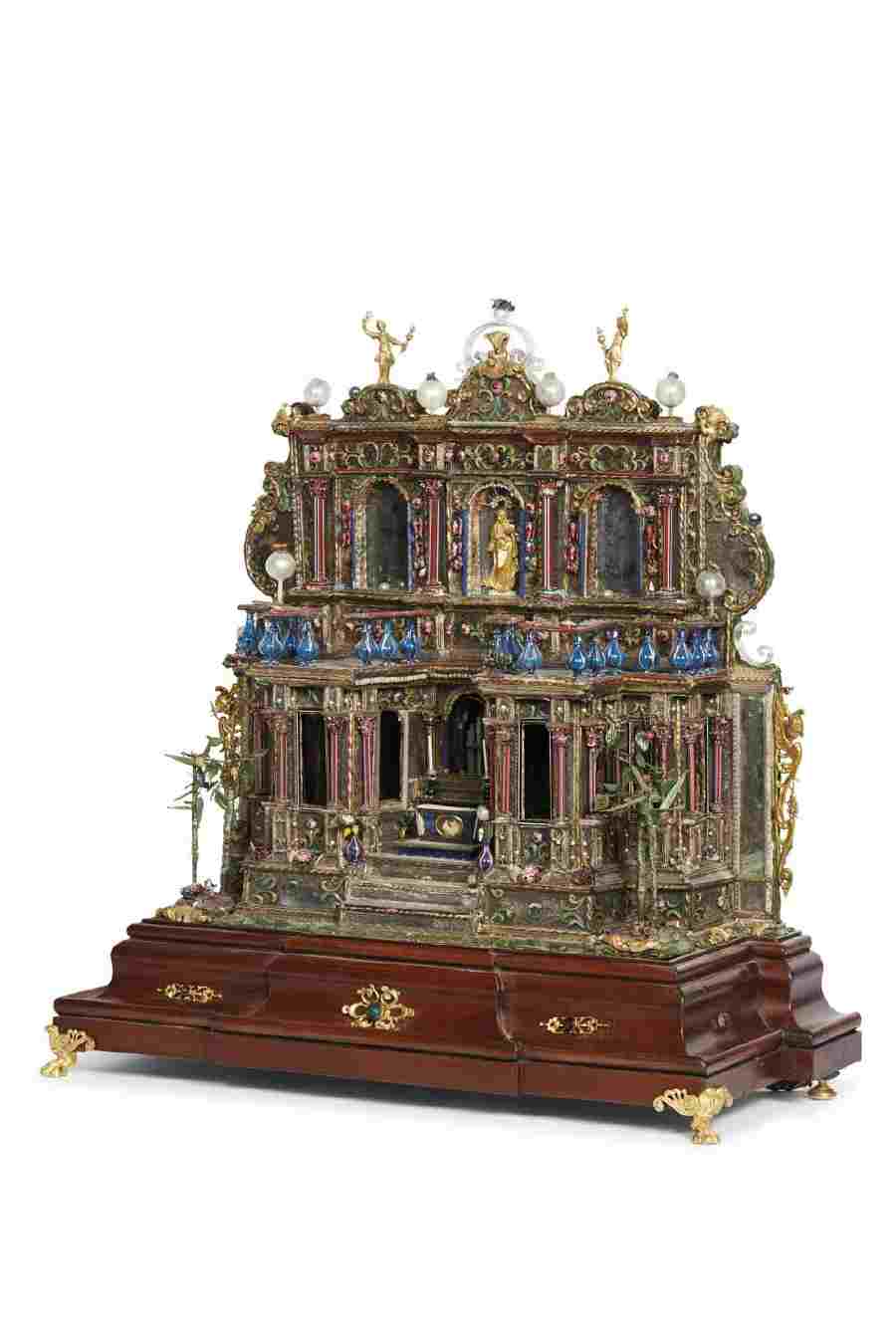 Gli ultimi cinquanta lotti del catalogo sono dedicati alla collezione di un gentiluomo milanese, una wunderkammer composta di smalti, vetri policromi, coralli e metalli lavorati a creare un caleidoscopico mondo di oggetti curiosi e rari distribuiti in un ampio arco temporale: da un importante faldistorio longobardo del VI secolo d.C., prezioso esemplare di sedia pieghevole da campo valutato 15.000/20.000 euro, si arriva a due raffinati manufatti del Barocco siciliano, un San Sebastiano alla colonna in bronzo dorato, corallo e madreperla e un raro modello di facciata di chiesa in vetri policromi con decorazioni in bronzo dorato, stimati rispettivamente 6.000/8.000 e 15.000/20.000 euro (lotti 206 e 217) passando per una figura femminile dolente del Maestro di Pizzighettone la cui stima è di 20.000/30.000 euro (lotto 236) rappresentativa, insieme a un acquamanile fiammingo 15.000/20.000 euro (lotto 213), del periodo tardogotico.