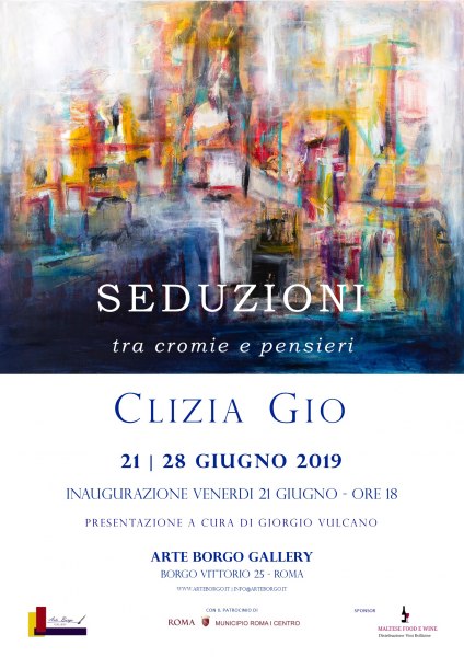 Venerdì 21 giugno 2019 dalle oro 18.00 presso lo spazio espositivo di Arte Borgo Gallery verrà inaugurata la mostra Seduzioni tra Cromie e Pensieri, personale dell’artista Clizia Gio.