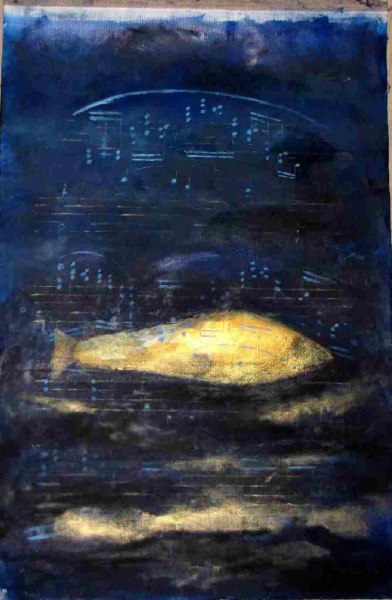 I codici a barra identificativi dei libri diventano cancelli, steli di fiori, rami di ulivo su cui l’artista imprime scritture occidentali e orientali, alfabeti antichi e moderni, grafie misteriose; il QR diventa un mosaico, le bottigliette della “Coca cola” donne solitarie e pensose i cui lineamenti sono nascosti dal burqa. Non sfuggono al suo pennello neanche gli spartiti musicali le cui note danzano con le linee del pentagramma, dialogano con pesci, mare, foglie e richiamano alla mente, quando nella pittura si fonde l’eleganza della musica, autori occidentali quali Rossini e Debussy. Anche i capolavori di Michelangelo, Masaccio, Leonardo da Vinci, Botticelli, autori tra i più affascinanti della storia dell’arte occidentale, subiscono una trasformazione per mano dell’artista che trasforma la “Ultima Cena” in un fast food sacro e pubblicitario, sostituisce la “mela” dell’Antico Testamento con una più tecnologica “Apple”.